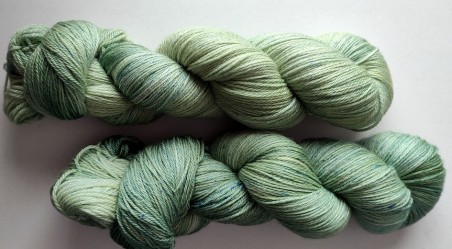 Lana merino teñida a mano en color "Salvia". Con una madeja es suficiente para hacer un chal, una bufanda, un pañuelo...